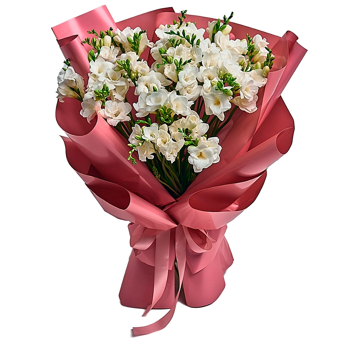 Фрезия белая. Упаковка (лента, пленка, крафт, сетка, пленка матовая)