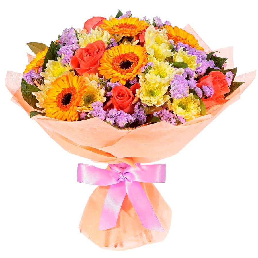 | Состав | Герберы, Розы, Хризантемы |