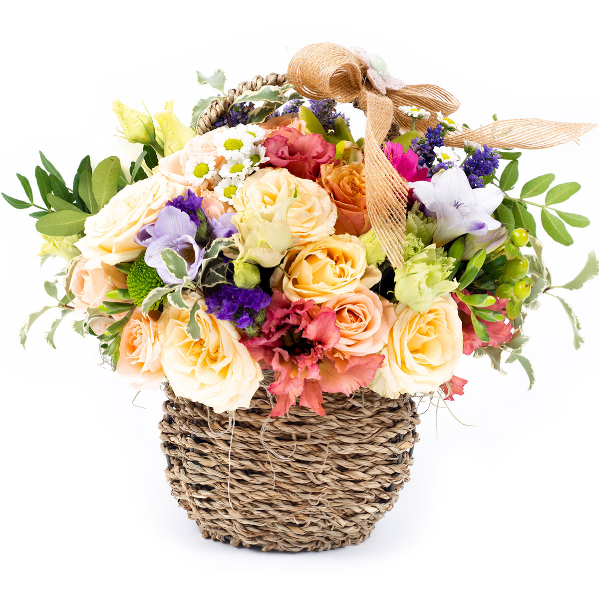 Корзина с цветами «Нектарные аккорды» с доставкой по г Куса: вы можете купить букет в цветочном интернет-магазине «Флормания» по цене от 3890 руб.