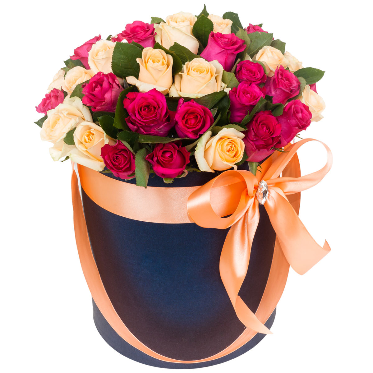 Цветы в коробке «Нежная фантазия» с доставкой по г Куса: вы можете заказать букет в супермаркете цветов «Флормания» по цене от 3390 руб.