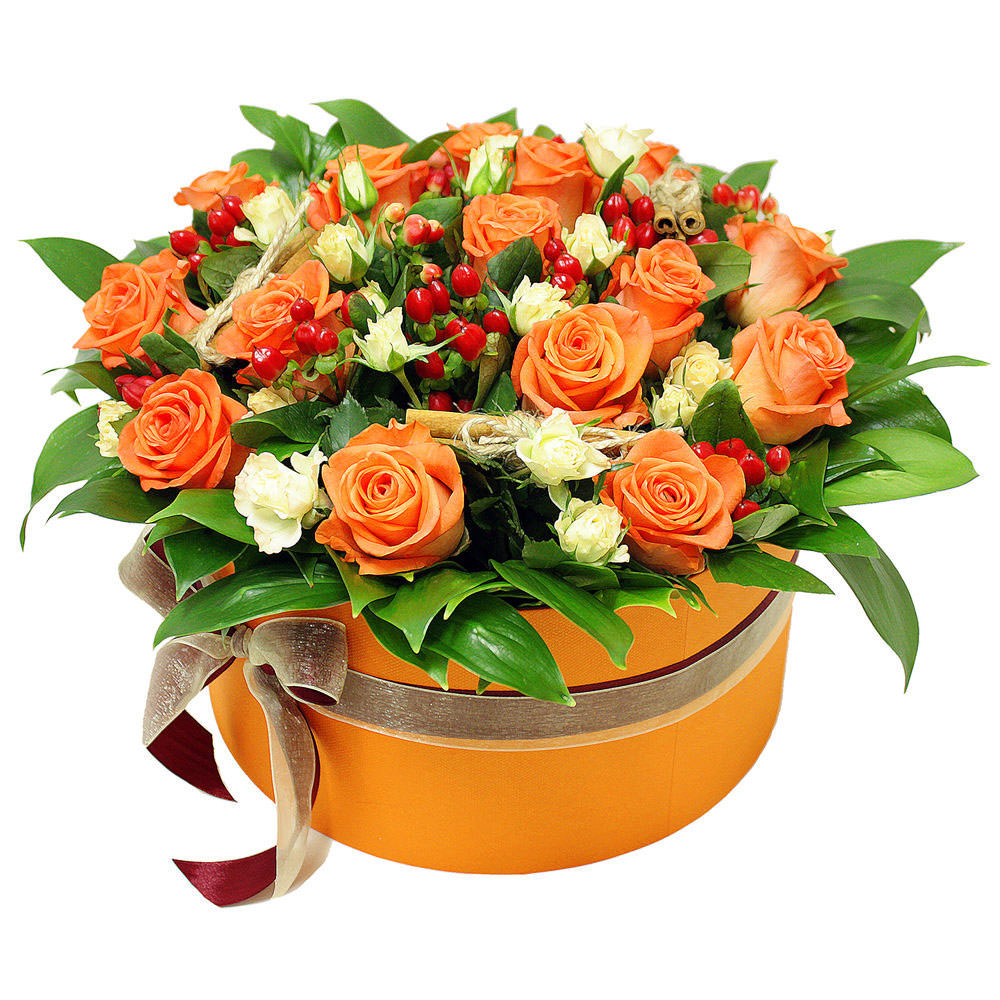 Цветы в коробке «Оранжевый закат» с доставкой по г Куса: вы можете купить букет в цветочном интернет-магазине «Флормания» по цене от 3390 руб.