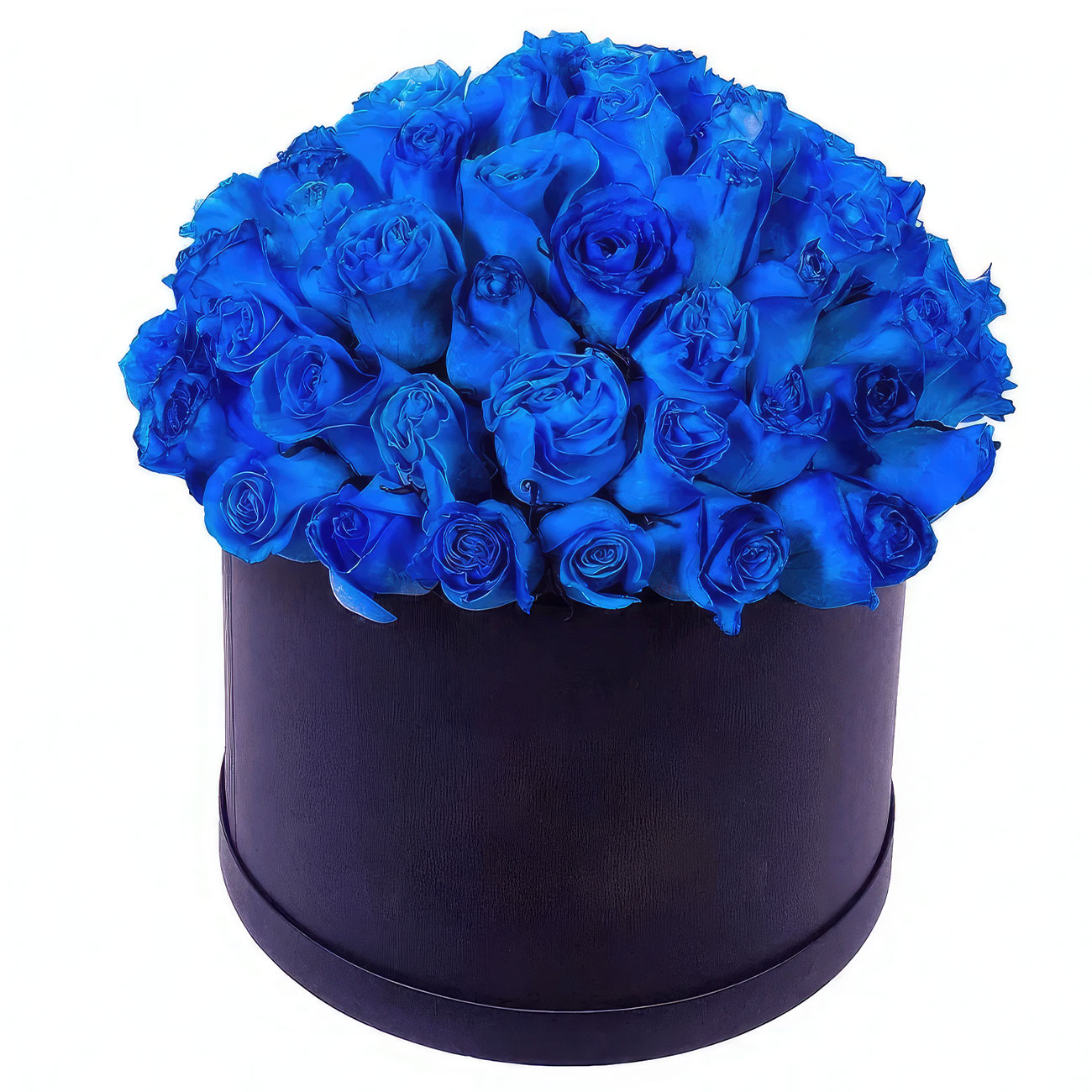 Синие розы. Упаковка (шляпная коробка, квадратный бокс, коробка сердце, оазис)
