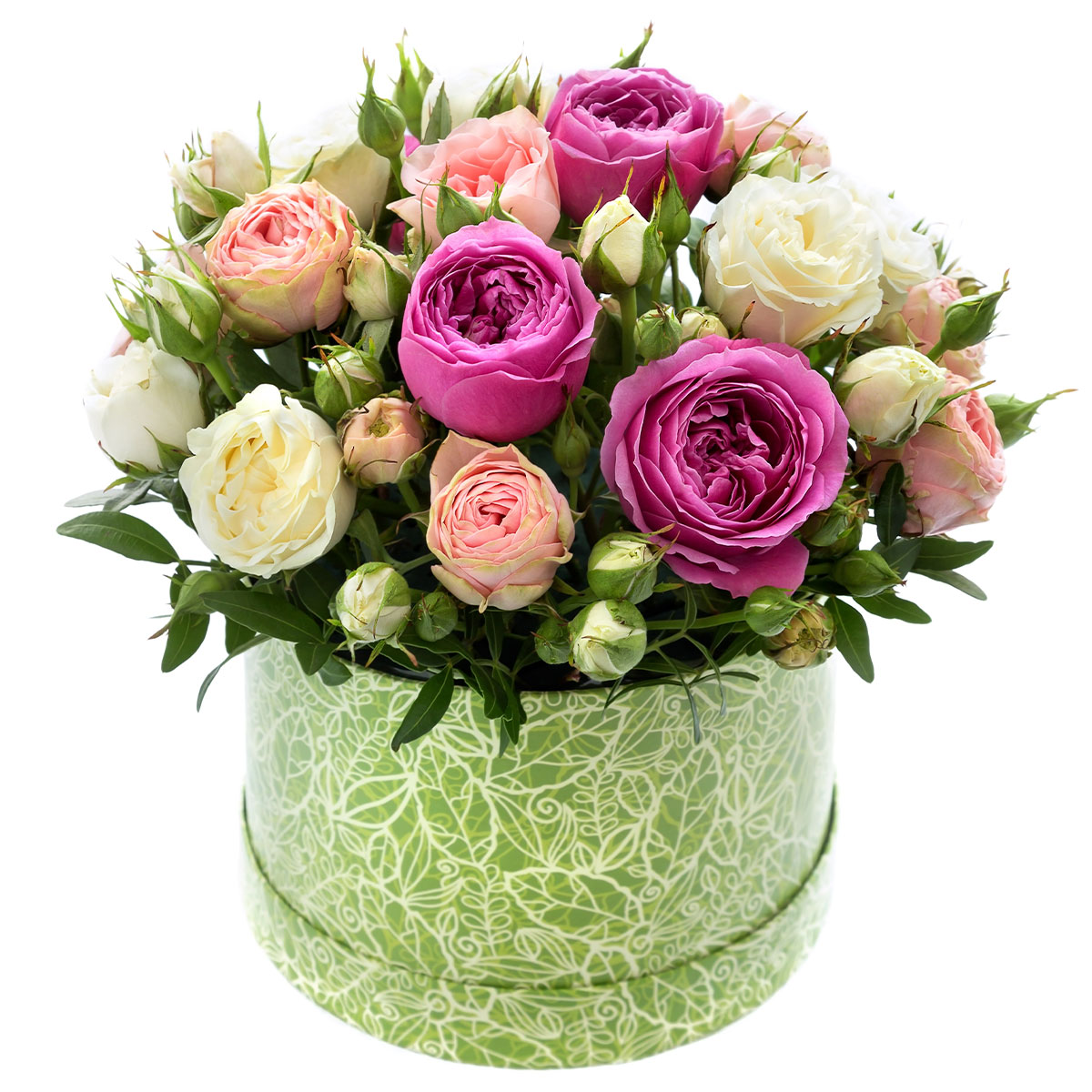 Цветы в коробке «Утренний жемчуг» с доставкой по г Куса: вы можете заказать букет в салоне цветов «Флормания» по цене от 3390 руб.